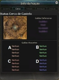 No castelo existem 2 exércitos, o exército do Marechal e seus aliados (guilds defensoras), e o exército das guilds atacantes. As guilds defensoras são compostas pela guild do Marechal e por até outras 3 guilds aliadas, num total de 4 guilds. As guilds atacantes são compostas por até 16 guilds de mesma nação, que são divididas em grupos de 4 cada. Entram na guerra todas as guilds (num máximo de 16), que se inscreverem antes da guerra começar. A guerra acontece toda semana aos sábados às 20h.